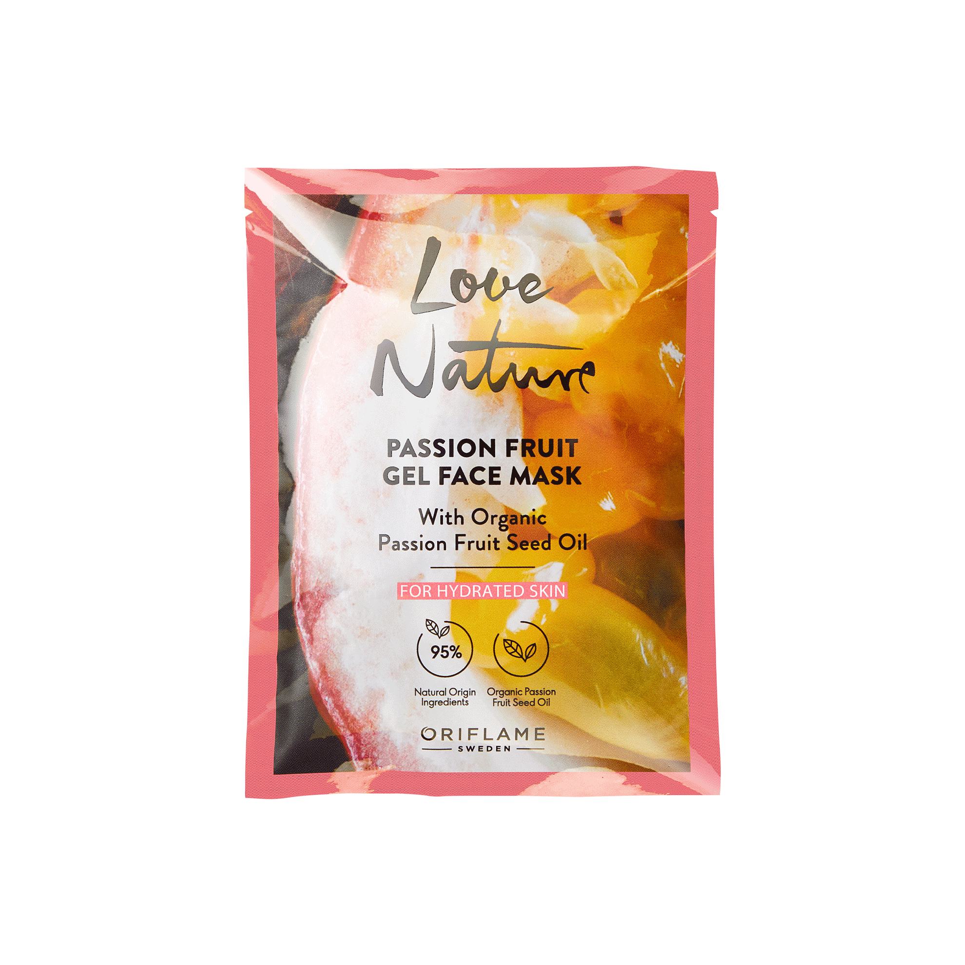 Love Nature terini namlantirish uchun organik marakuya bilan gelli yuz niqobi